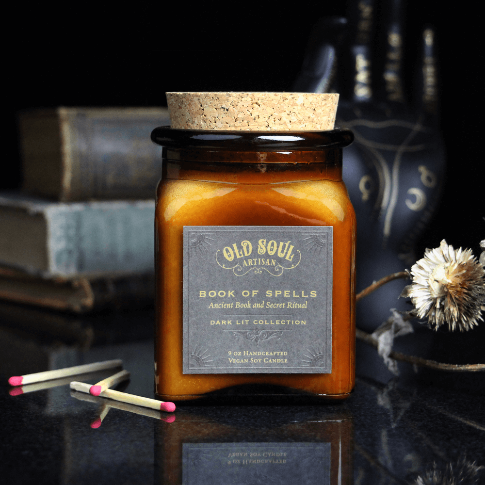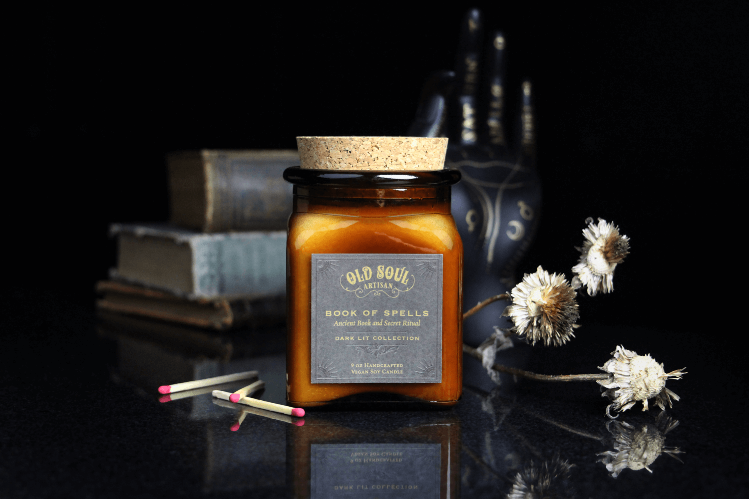 Book of Spells Soy Candle (chocolate, sandalwood, black tea)